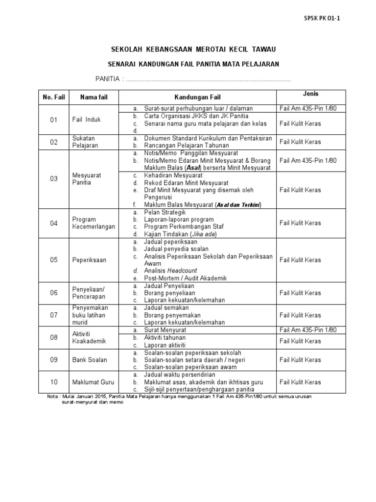 Doc Senarai Semak Isi Kandungan Fail Panitia Mata Pelajaran Panitia Fazila Wati Academia Edu